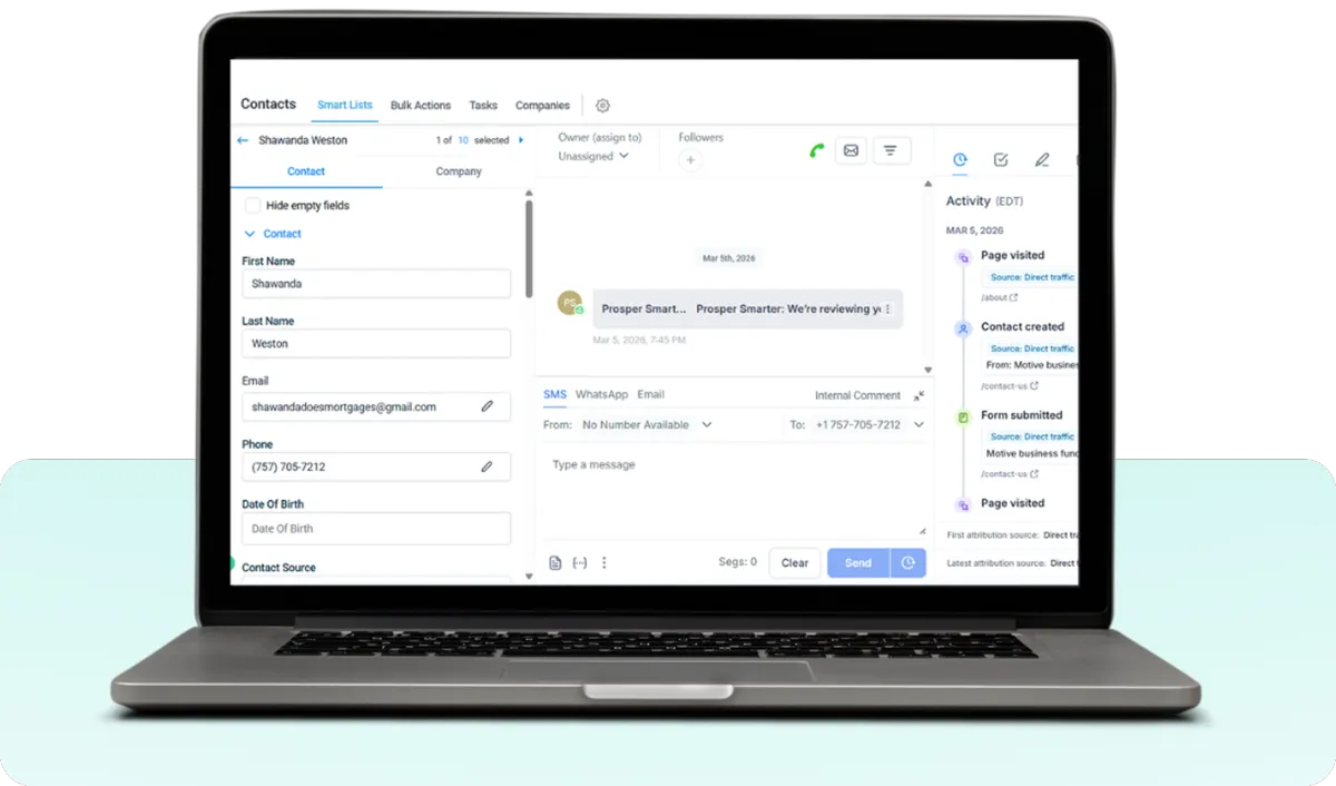When messages are scattered across SMS, email, Facebook, Instagram, and Google Chat, speed is nearly impossible. Profiger pulls every message from every channel into one screen. A Facebook message at 8 AM, a text at noon, a website inquiry at 3 PM. You see all three in one place and reply from the same place.